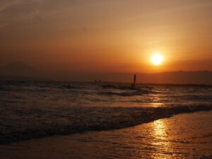 風が気持ちよく夕日がとてもきれいでした。何回行っても湘南はいいところだと思います。