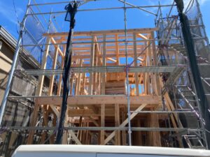 先週の良く晴れた日に上棟工事を行いました。