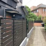 門扉、塀とも木製に見えるアルミで提案させていただきました。