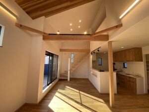 BLOG ブログ 2022.12.17 未分類 完成! 先日、完成した現場です! サンキホームの特徴でもある無垢の床材、漆喰を使用し、さらに 迫力のある勾配天井部分に板張りを行いとてもかっこいいです。 構造材である梁と階段手摺の一体化も素晴らしい!! 前へ ブログ一覧へ 次へ