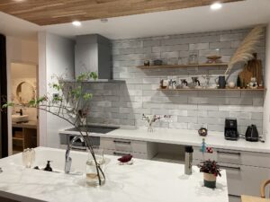 キッチン天端とタイルの相性も、2段ある埋め込みカウンターとの相性も抜群です。