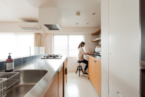 キッチンやリビングのち場所とした場所にワークスペースがあると、なにかと便利です。