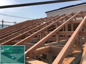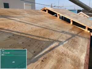 次に写真2枚目の、野地板です。これは屋根の下地となり雨音の吸収や熱に対しても大切な役目を果たしています。