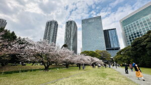 先日、最後かと思い「浜離宮恩賜庭園」というところへ桜を見に行ってきました。