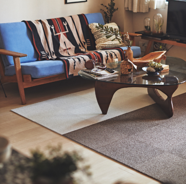 ワンちゃんの足がフローリングで滑らないようにカーペットタイルを床に