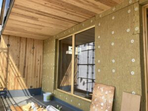 川崎CLT物件、外張り断熱ロックウール施工しました。