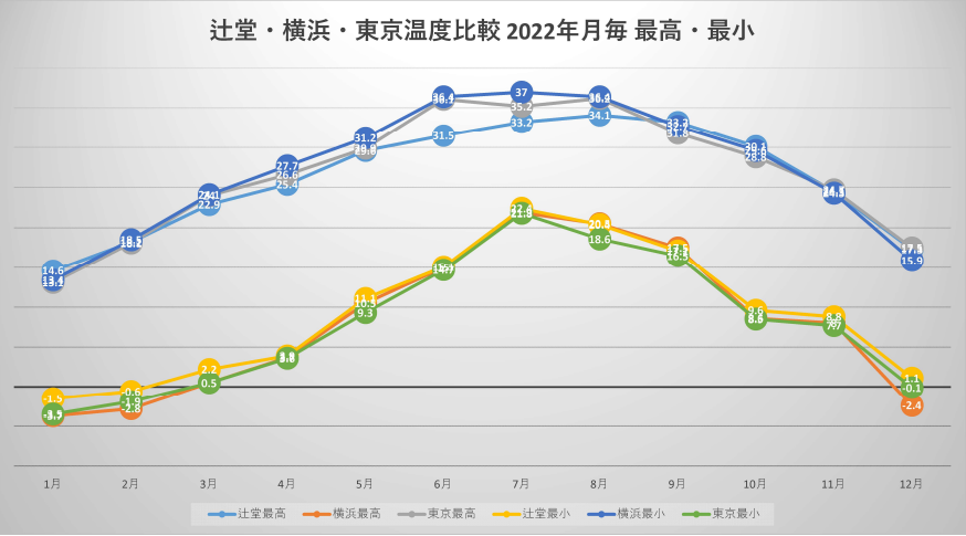 辻堂以外は、東京と、横浜です。アメダスのデータと思われます。