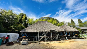 古い建物なので屋根の吹き替えも含め、耐震補強の工事をしているものもありました。家全体を持ち上げて耐圧盤を作り、地面と縁を切り免震構造としている民家もあります。