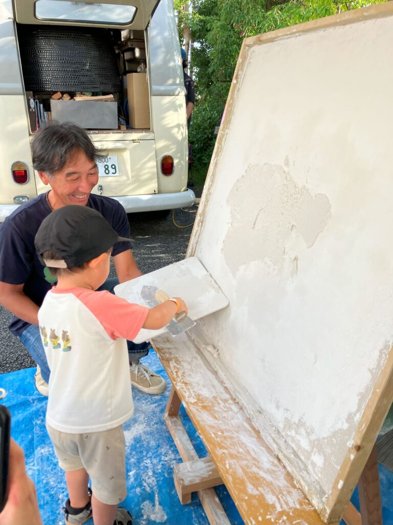漆喰塗りについては、大人の方にもたくさんご体験いただきました!