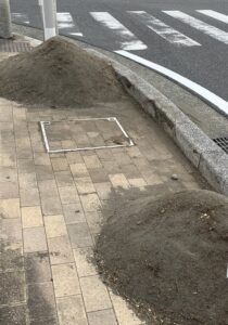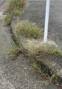 歩道には大量の雑草が生えており、雑草取りから始めました。