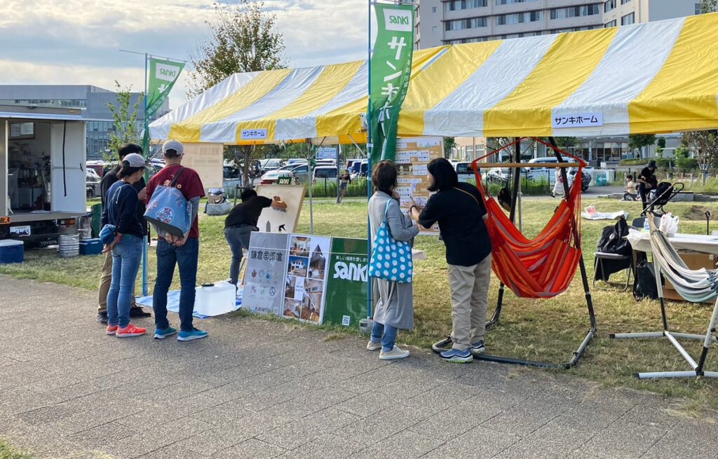 サンキホームは漆喰塗り体験とハンモック体験を行っております。