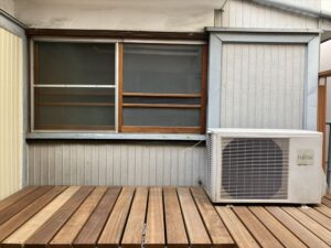 2階バルコニーは、南洋材のデッキ材で、改修して、