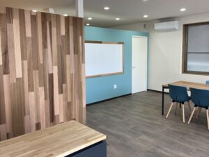 壁の一部にはホワイトボードシートを施し、お子様がいらした際のお遊びコーナーになってます!