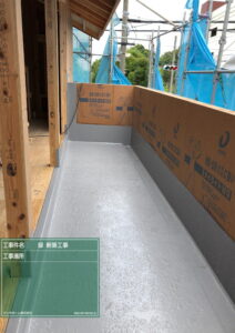 そして「趣味室のある家」では、バルコニーの防水工事が完了し、構造金物の検査を待ち受けている状態になりました。