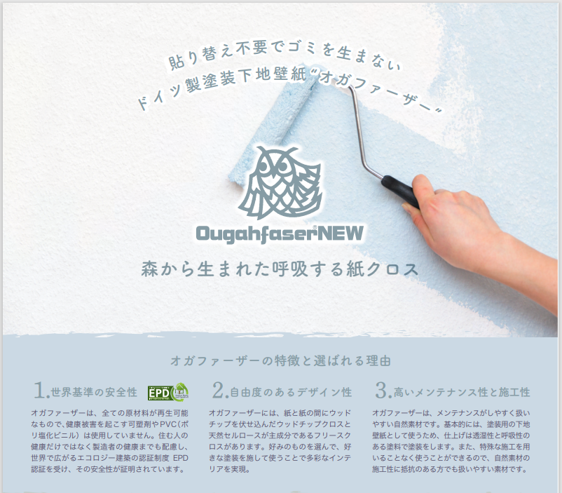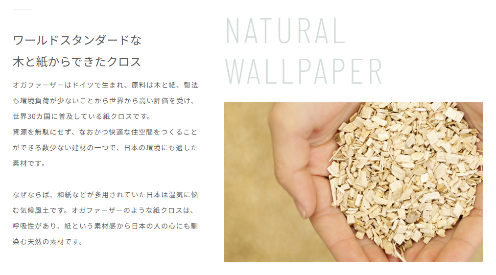 オガファーザー。木と紙で作られた、天然素材100%の下地用クロスです。