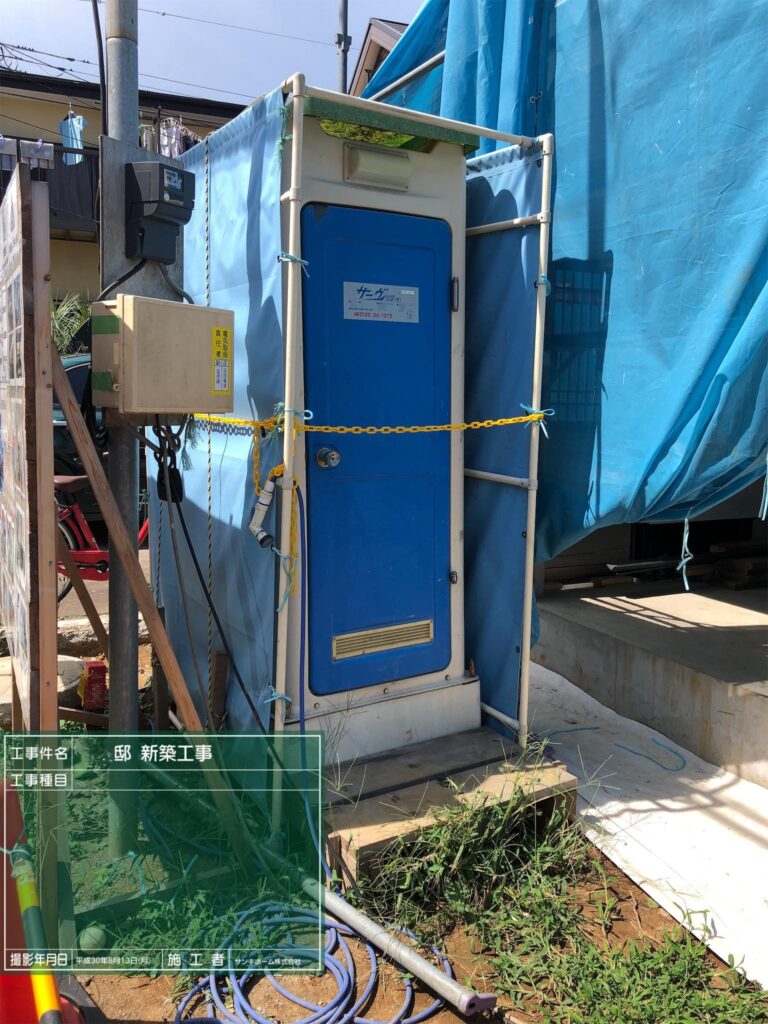 弊社も明日より夏のお休みを頂きますので、現場の戸締りもきちんとして、特に仮設トイレなど使用できないように鍵も掛けました。