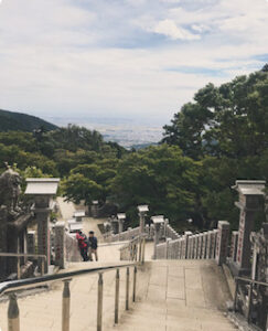 頂上の神社からは美しい山と街の景色を眺める事が出来ました。