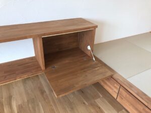 2Fリビングには宙に浮かせた作り付けけのTVカウンター