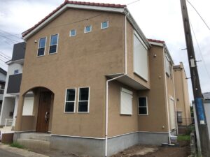 ベルアートで仕上げた外壁の色はメーカーに特注で作らせた『ミルクティー色』
