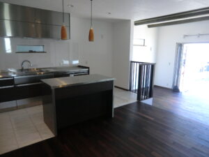 (まるでレストランの厨房のようですね。広々としたアイランドキッチンは女性の憧れです。平塚市:T様邸 )