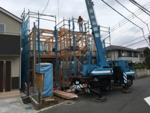 BLOG ブログ 2017.09.12 未分類 建方工事のクレーン 先日茅ヶ崎市で建方をしました。 サンキホームでは、いつもこの クレーン車にお世話になっています。 運転手はベテランなので作業はスムーズに進みます。 活躍したこのクレーン車ですが、とても古い車両です。 この形のクレーン車は少なくなってきています。 いつまでも活躍してもらいたいです。 前へ ブログ一覧へ 次へ