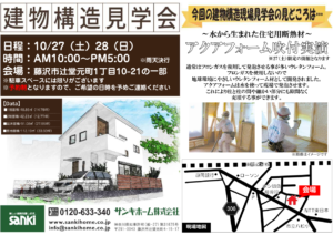 今週末10/27・/28(土・日)は藤沢市辻堂元町で【構造見学会】