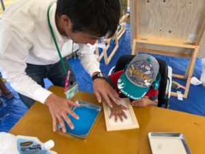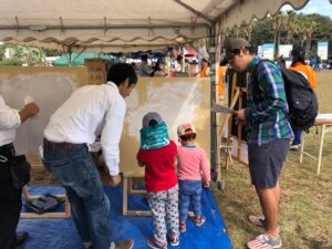 漆喰塗り体験では大人の方から小さなお子様まで体験していただき、