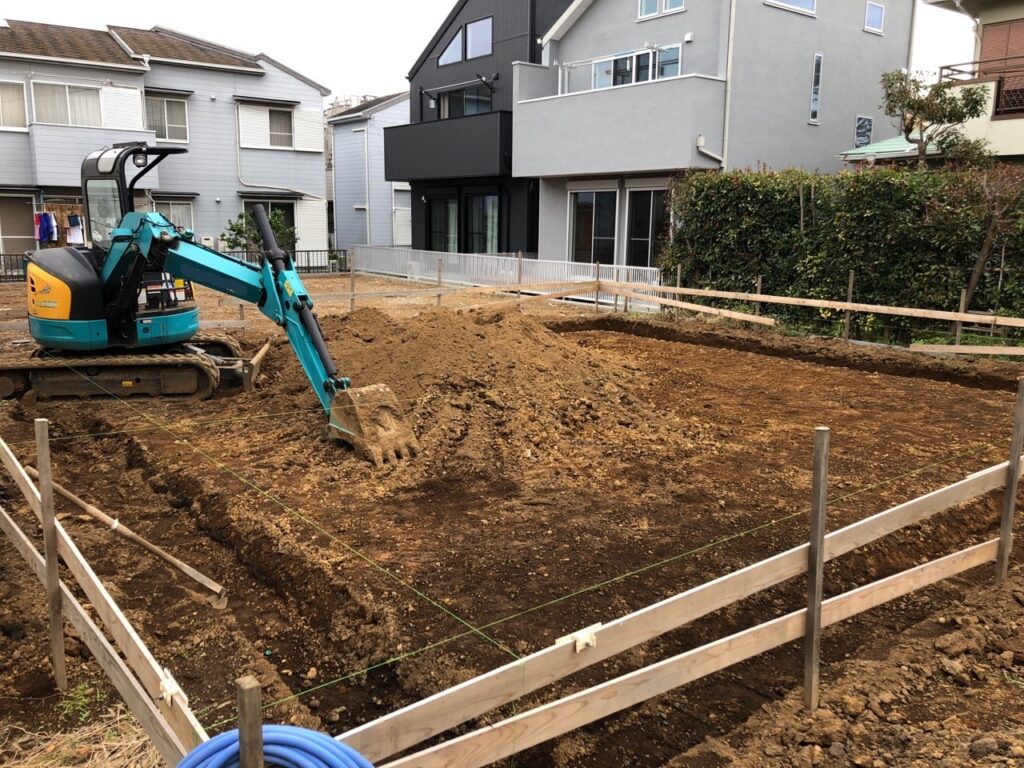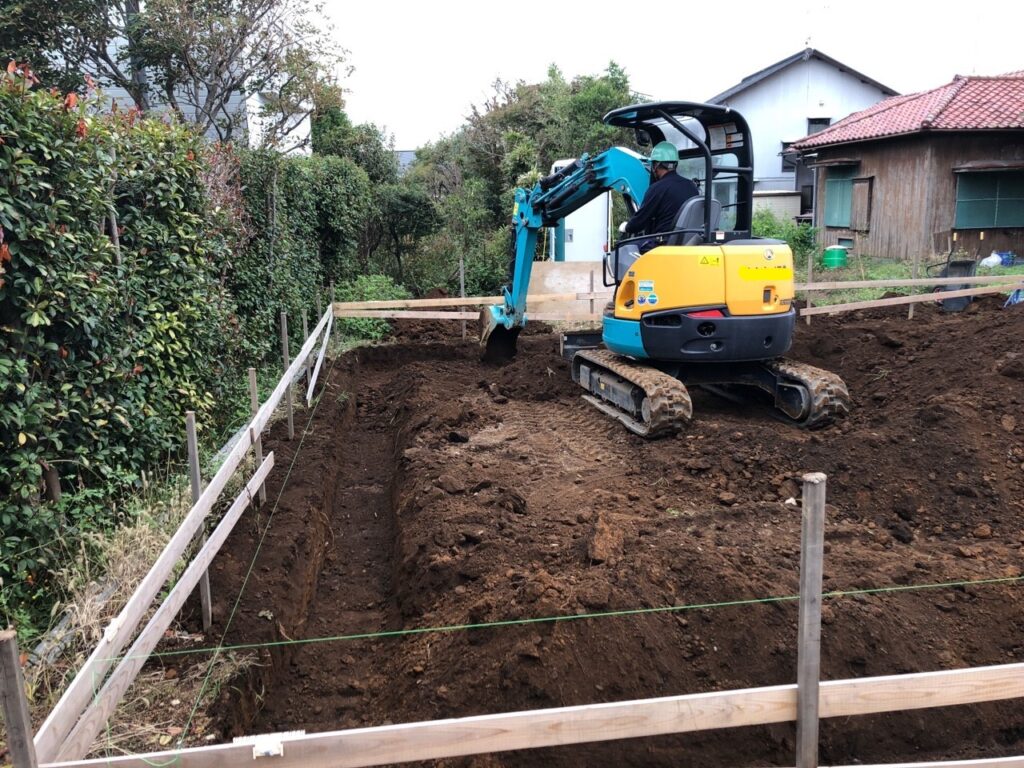 鎌倉市ならでは埋蔵文化財の立ち合いも無事クリアし、基礎工事着工しました。