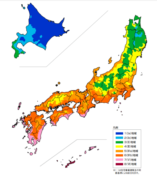 そのため、日本は8等分の地域区分に分けられていて、それぞれに省エネルギーの基準があります。