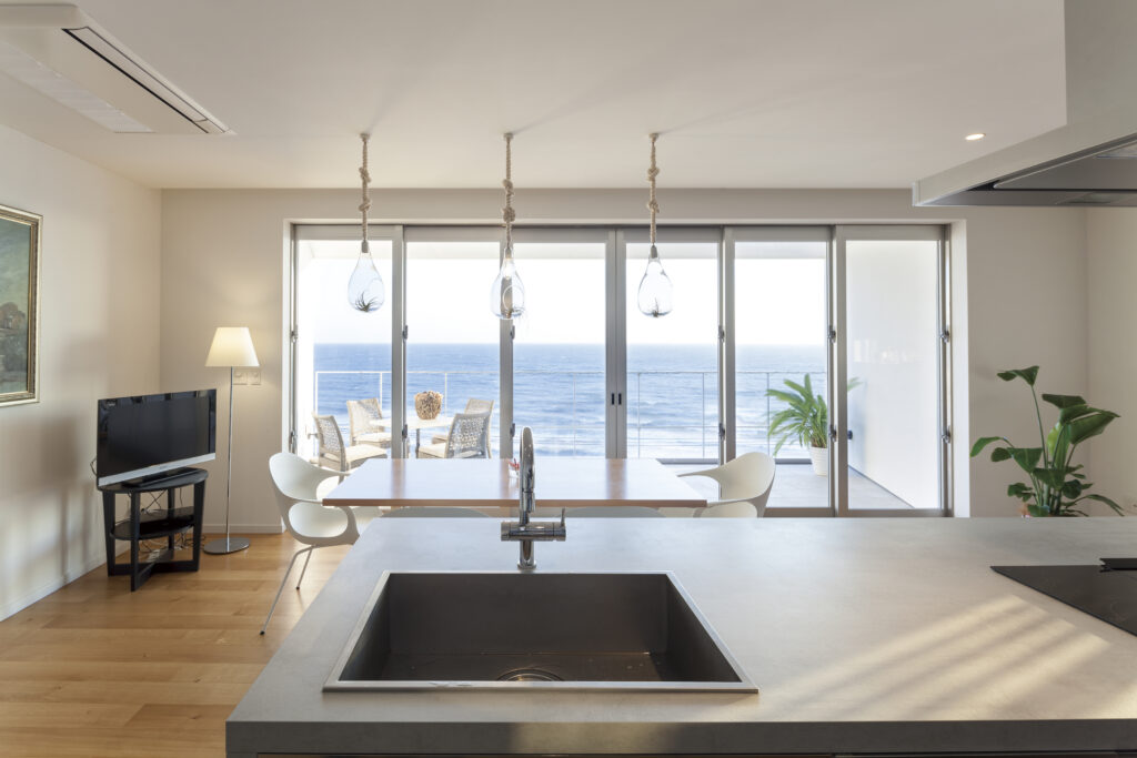 江ノ電「鎌倉高校前」駅すぐで、海が目の前の絶景民家で江の島一望、奥様は海を眺めながらお料理が出来る等、お施主様もとても楽しそうに出演されておりました。