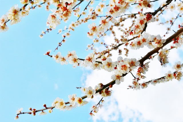 この意味にふさわしく、寒さがことのほか厳しい日が続いておりますが、ふと目線を上げてみると梅の花が咲いていました。
