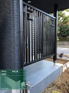 「趣味室のある住まい」では玄関前の格子を付けました。