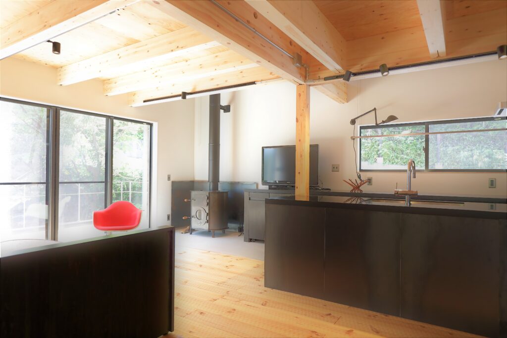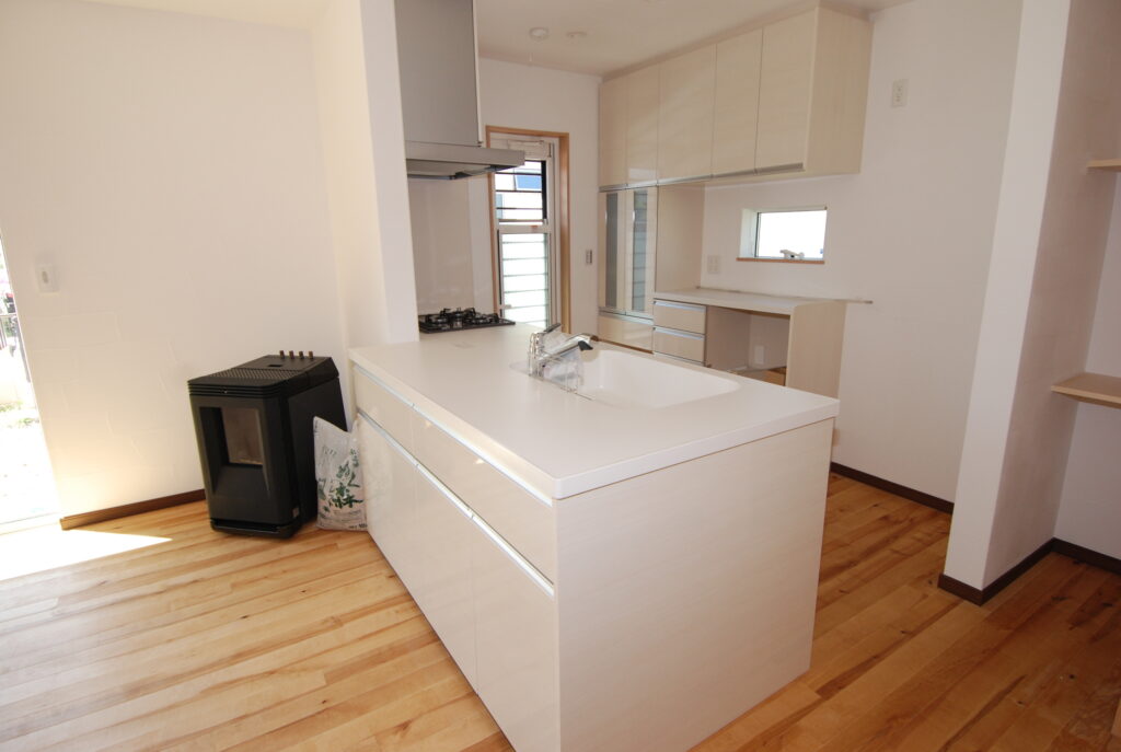 サンキホームにて建築されたお施主様は、自然素材(無垢材や漆喰等)を使われる方が多いせいか、エアコンを好まない方が多いです。理由を聞くとエアコンの風が当たるのが気持ち悪いとの事でした。そこでエアコン以外の暖房器具でよく使われるのが薪ストーブやペレットストーブです。空間を設けたプランも多いので、家全体が温まるようにと選ばれています。