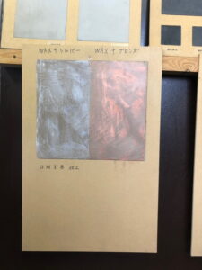 座学だけの講習会と思いきや、内容のほとんどが実技講習で、顔料を使い、MORTEX(モールテックス)を練って作り、実際に鏝で塗って、仕上げの保護材を塗り、バフ仕上まで行いました。