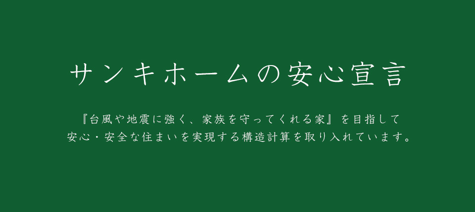 サンキホームでは全棟で構造計算を行うことにより、安心で信頼できる家づくりを目指しています。