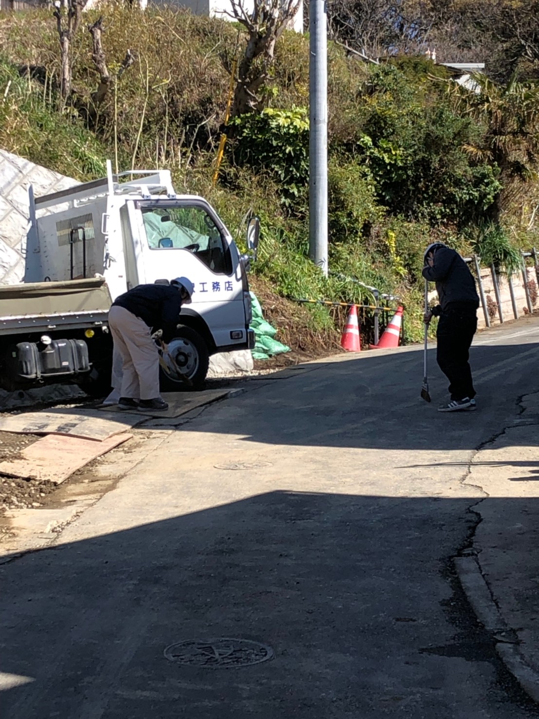 現場の清掃と、近隣のゴミ拾いを行いました。