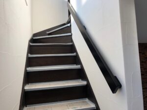そこで階段の内周部側に手摺を取り付けることにより真っ直ぐな手摺を取り付けることができ、すっきりとした空間を演出することが可能です。