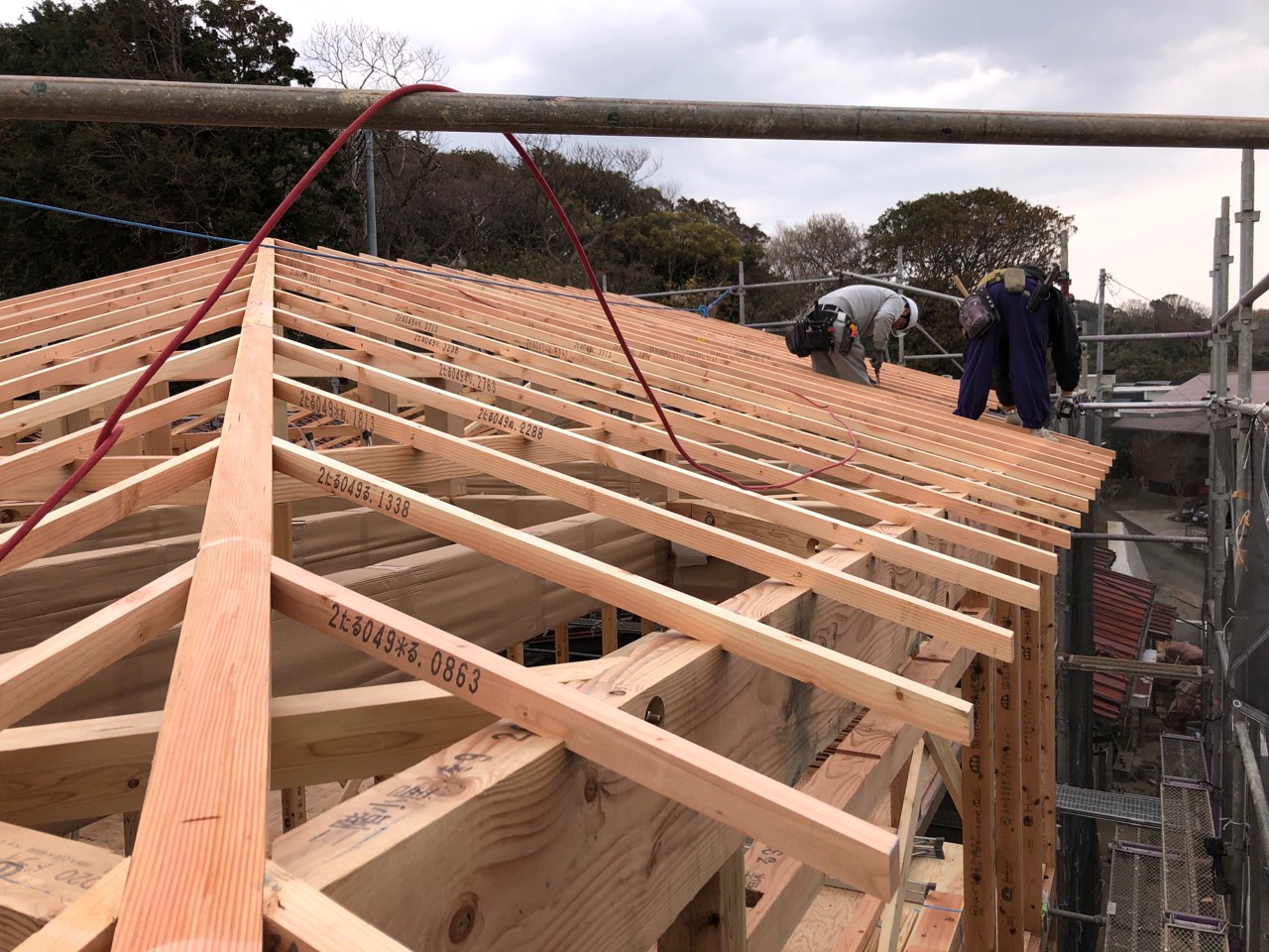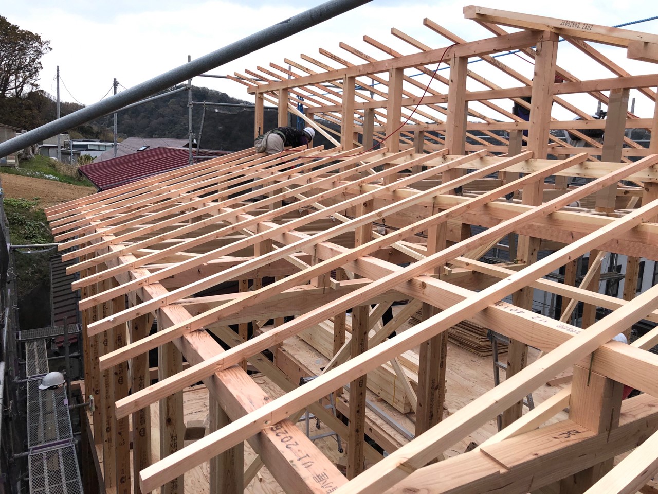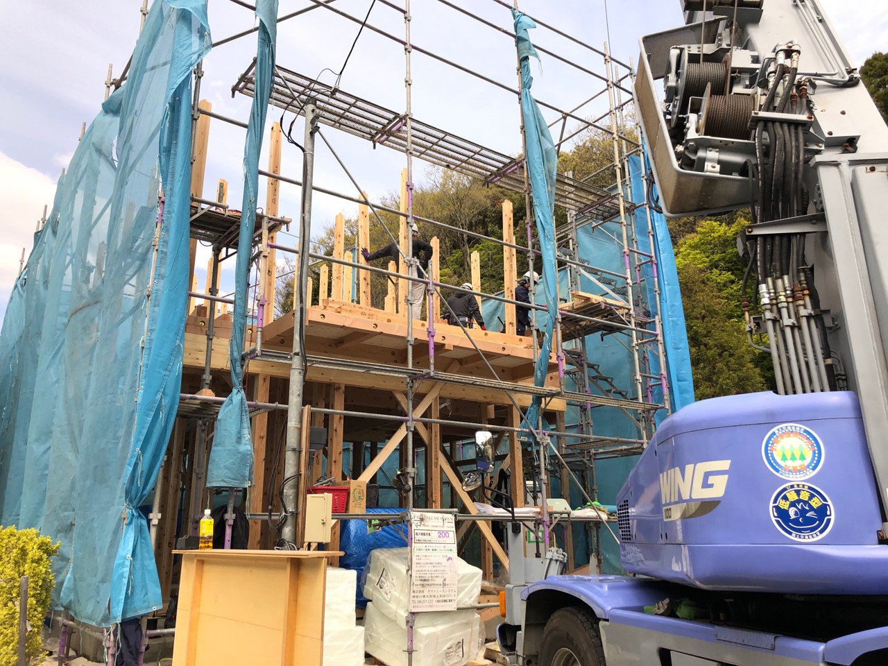 神様に祈りが通じたらしく晴天の中、棟上げすることが出来ました。