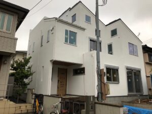 真っ白な『ベルアート』を吹き付けたので日が当たると眩しいぐらいです。