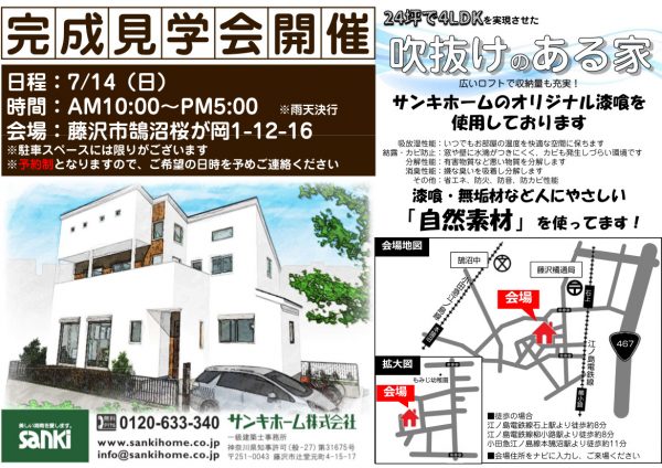 サンキホームでは、7月14日(土)藤沢市鵠沼桜が岡で、