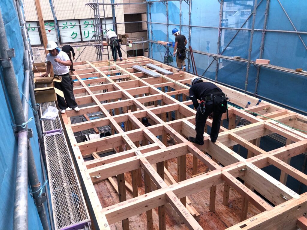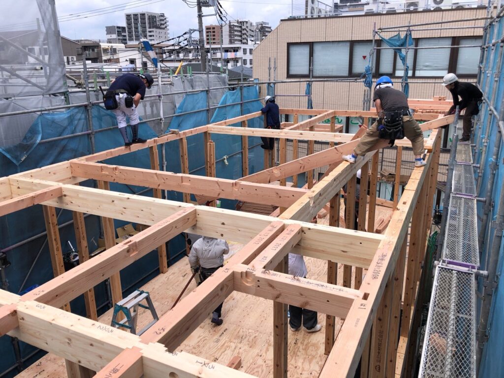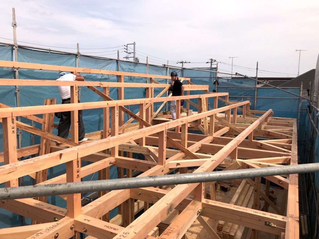 中々梅雨が明けない中で雨の合間を上手く利用して建て方