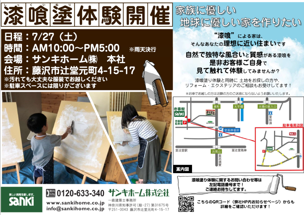 今週27日(土)に予定しております漆喰塗り体験ですが、