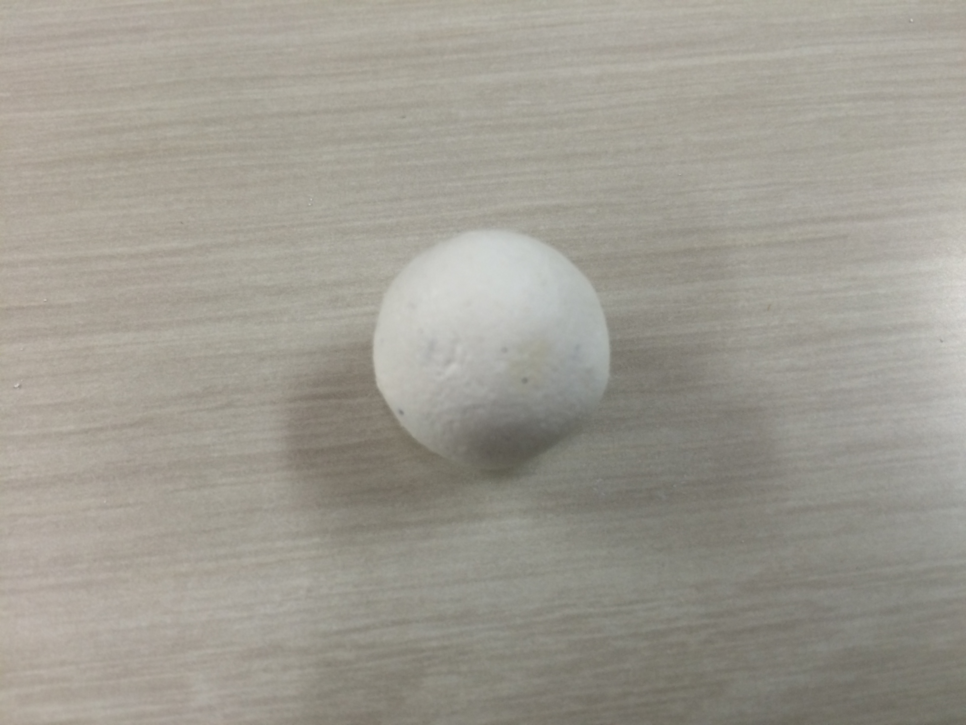 こうして出来た消石灰に水を加え、練り込んで丸めて漆喰団子を作ってみました。