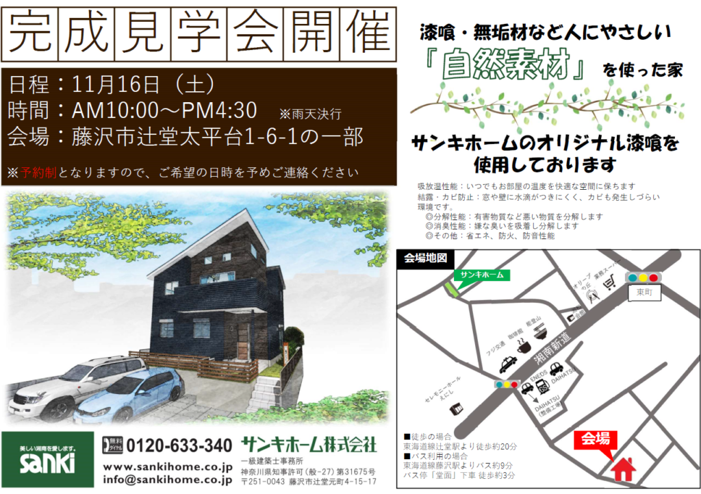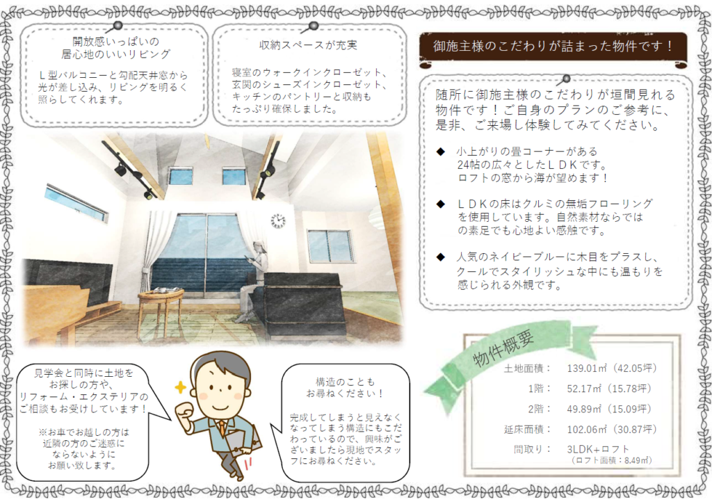 BLOG ブログ 2019.11.13 未分類 完成見学会予約お待ちしております! 【開催日程】11月16日(土) 【開催時間】AM10:00~PM4:30 ※雨天決行 【会 場】藤沢市辻堂太平台1-6-1の一部 ※予約制となりますので、ご希望の時間を予めご連絡ください 弊社オリジナルの漆喰を使用した物件です! 勾配天井を利用し、ロフトから海を望めるつくりとなっています。 是非家づくりの参考にいかがでしょうか。 皆様からのご連絡お待ちしています! ※お問合せ先 0120-633-340 前へ ブログ一覧へ 次へ