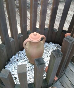 サンキホーム弐番館にお越し頂くと、入口を入ってすぐのところに設置されている ”壺”です。ご縁があり、弐番館でお打ち合わせとなりました際は、すぐ目に留まる場所にございますので、ご覧になってみて下さい。新築のお庭にお勧めするには、好みがあるので少し難しいかな?とも思いますが、個人的にはこの壺、気に入っています。