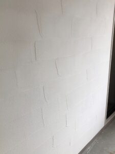 弊社は鏝にて漆喰の施工を致しますので、写真のように鏝跡を残した施工になります。鏝跡を残さない等色々なパターンもございますが、鏝跡は照明によって陰影が出てかなり雰囲気も良くなります。(照明が入っていないので、入った後に写真をブログに載せます。)