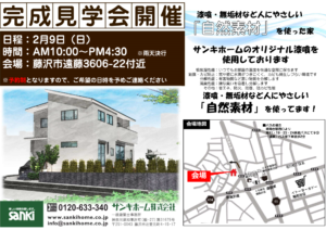 下記日程にてにサンキホームで施工した物件の完成見学会を開催致します。