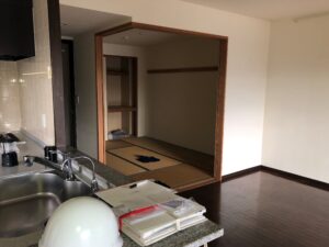 マンションによくあるリビングに隣接した和室をリビングと一体にする事により開放的なリビングになりました。