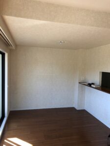 現在藤沢のマンションリフォーム中の現場にてクロス張替えを行いました。