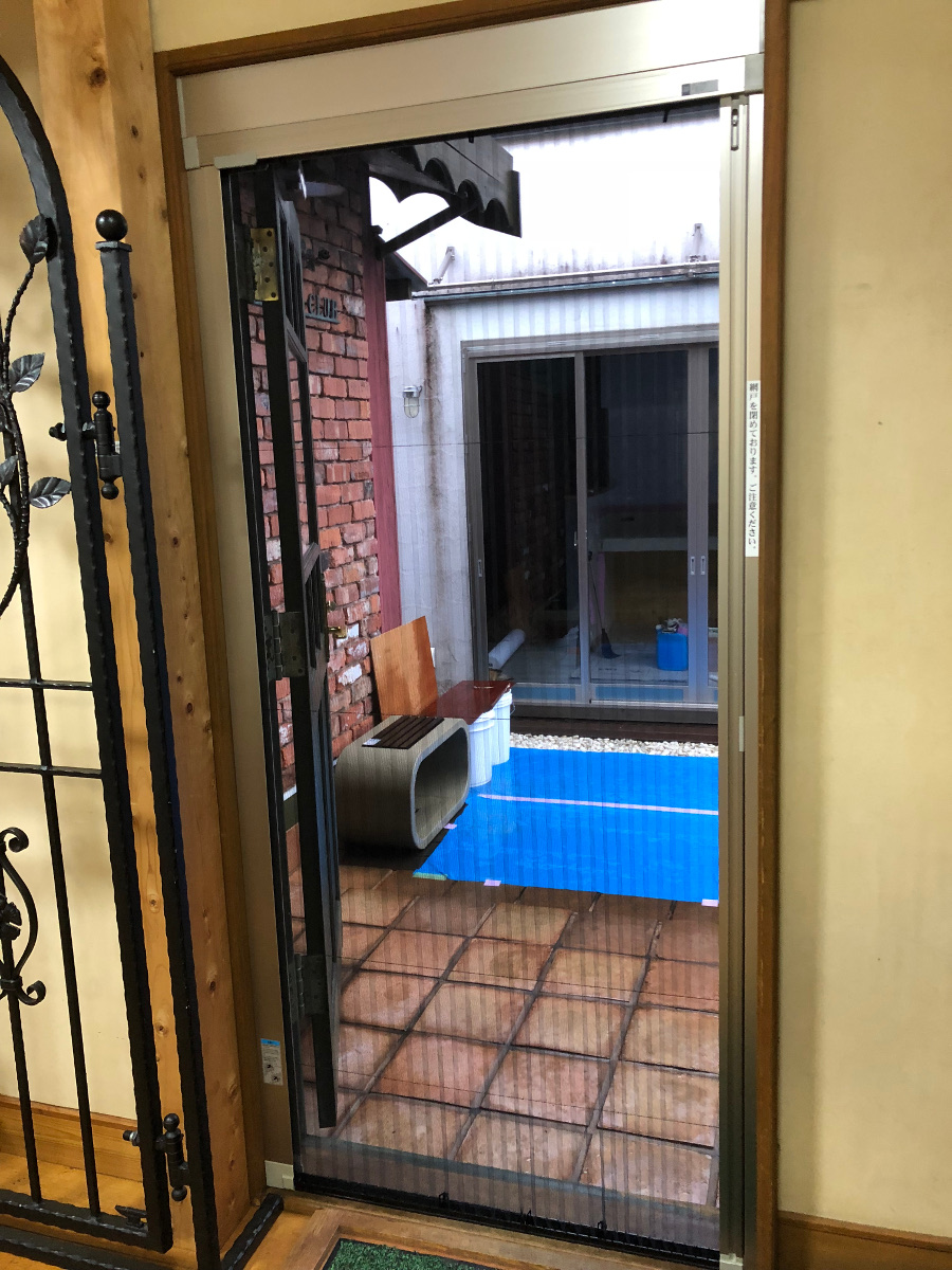 サンキホーム弐番館でも、玄関にYKKの横引き収納網戸を取付けました。